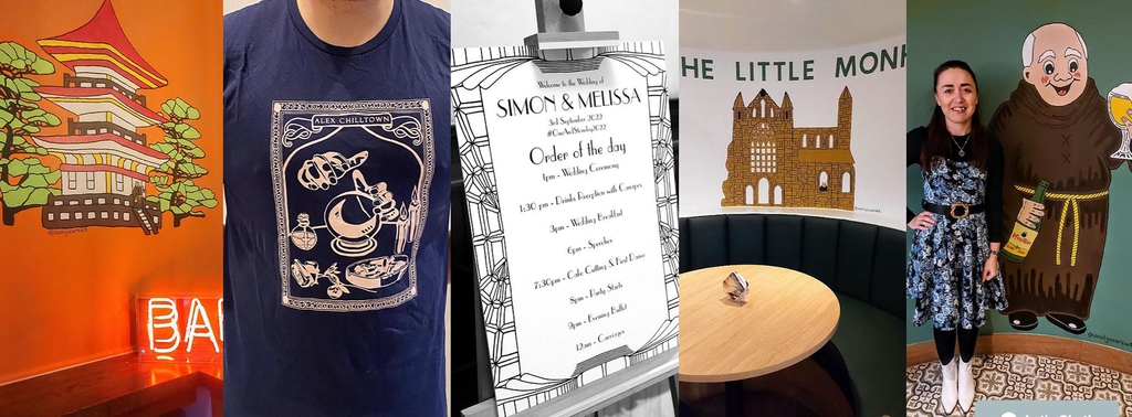 Recent commission work completed, including murals, illustrations, logos, branding & much more