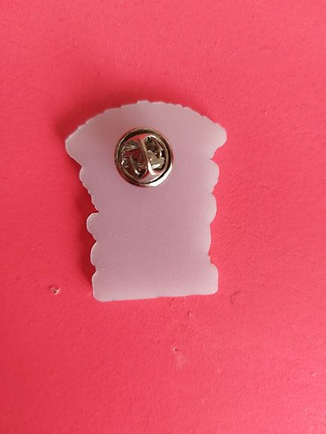 38mm (1.5") x 1.5" acrylic pin badges made from 100% recycled and recyclable plastics that have reached the end of their life-cycle and were destined for landfill or incineration, silver metal butterfly clutch.