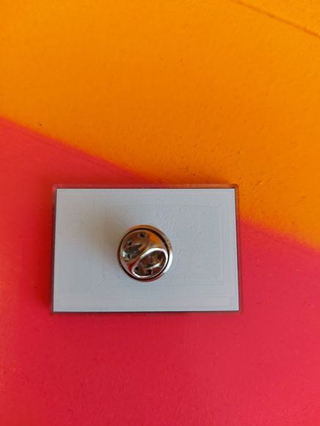 38mm (1.5") x 1.5" clear acrylic pin badges made from 100% recycled and recyclable plastics that have reached the end of their life-cycle and were destined for landfill or incineration, silver metal butterfly clutch
