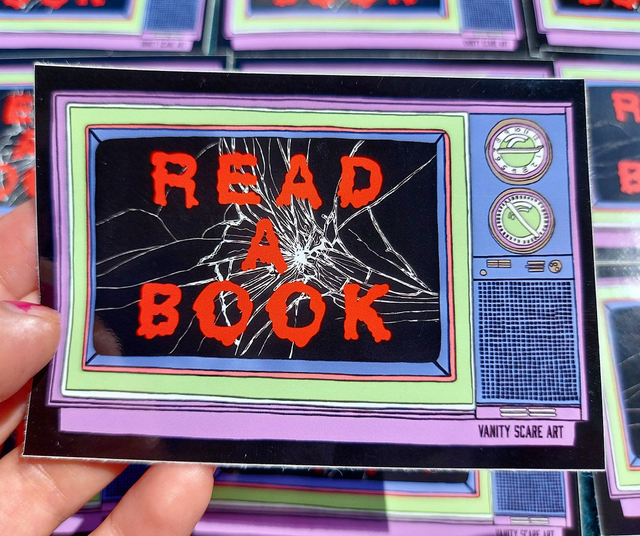Read a Book! 10cm x 7cm rectangular vinyl sticker.